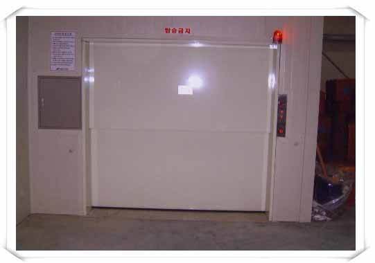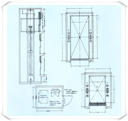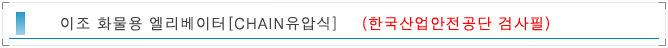 측면벽에 실린더가 설치되고 체인 연결 스프로킷이 플런저 상단에 위치한 유압식 승강기이다.