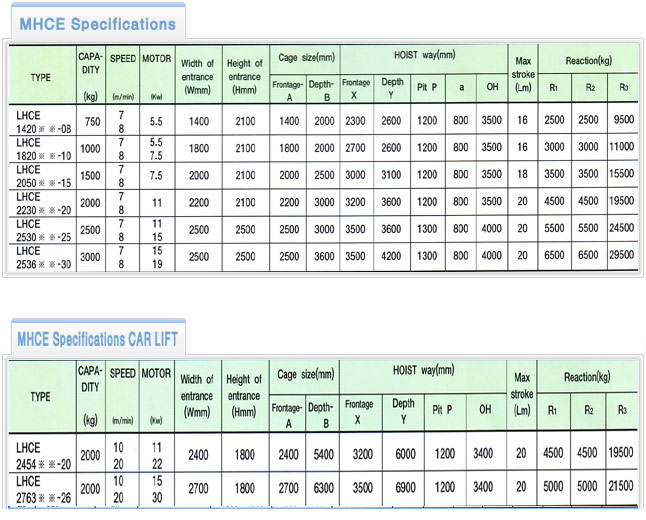 MHCE형은 승강로가 좁은 곳에서도 설치 가능하고 또한 하중의 대부분을 피트에서만 받게 되므로